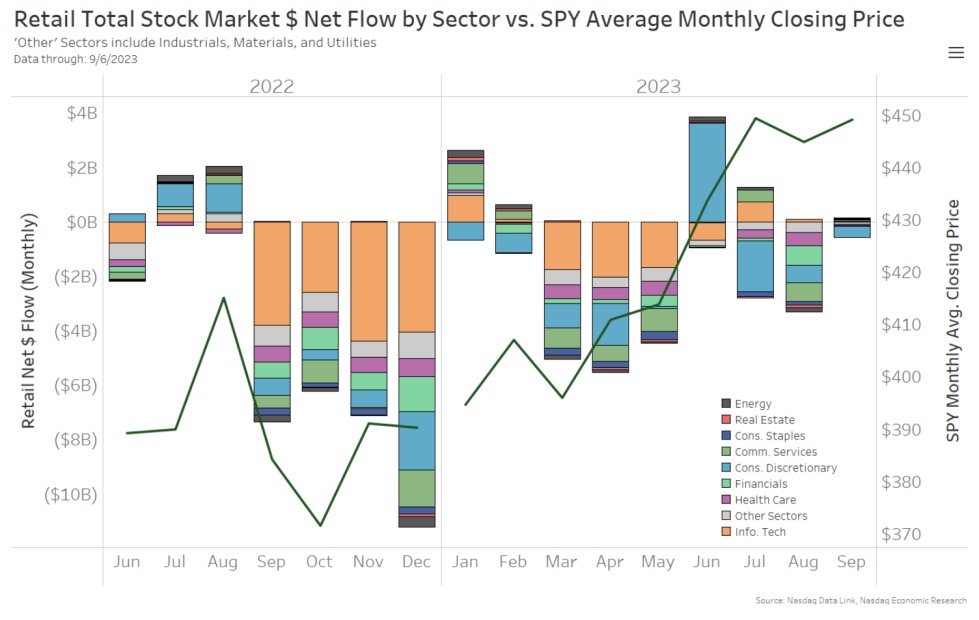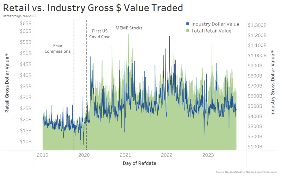 尽管整体市场、散户交易在夏季有所放缓,但数据显示,美国股市的散户活跃度仍然高于新冠疫情前,散户投资者继续为许多股票及 ETF 资产增加流动性。