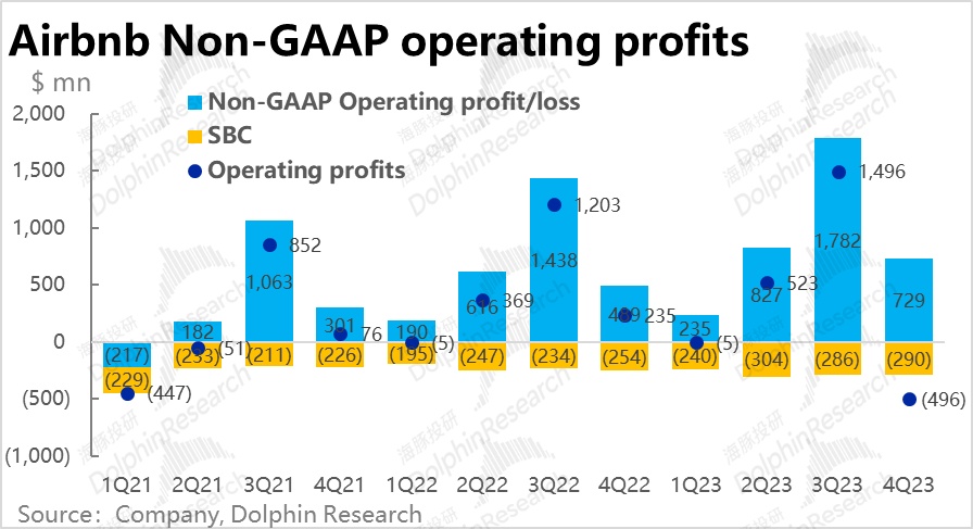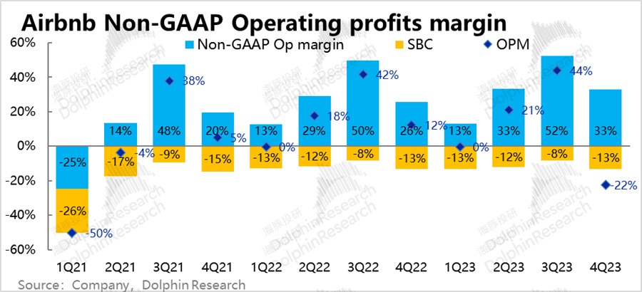 From the perspective of price and volume, Airbnb had a total of approximately 98.8 million bookings this quarter, with the growth rate also slowing down from 14% to 12%, which is consistent with market expectations. According to foreign investment banks, there has been a weakening trend in travel accommodation demand in Europe and the United States since the fourth quarter, and the company has also guided for a further slowdown in the growth of room nights in the first quarter of 2024. In other words, the sustainability of travel accommodation demand is currently the biggest concern.