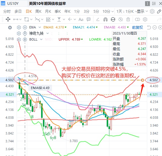 这代表这些交易员们预期美国 10 年期国债收益率将继续飙升至 4.5% 以上。