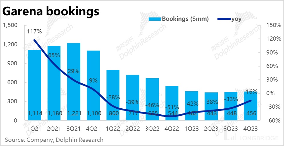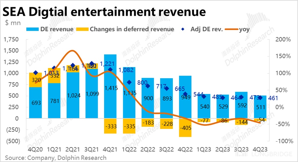 Garena's revenue was 510 million, a 46% YoY decline, which may seem below market expectations, but it is mainly due to a significant reduction in deferred revenue confirmed this quarter, so it is not a major issue. The trend in revenue changes is the key.