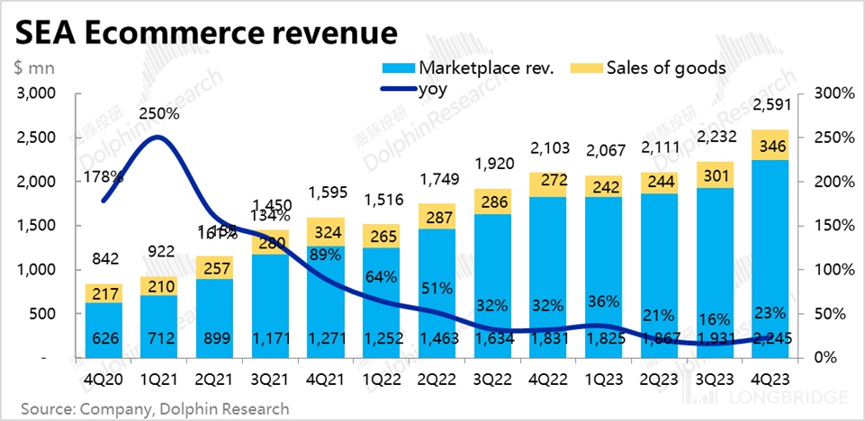 By the end of September 2023, TikTok Shop was completely banned by the Indonesian government. In December, TikTok officially announced the acquisition of Tokopedia, re-entering Indonesia. Therefore, in the entire last quarter of last year, with the complete absence of TT Shop, Sea seized the opportunity to increase promotion and countermeasures such as live streaming for sales.