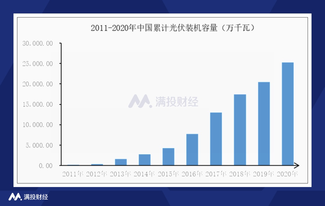 根据中国光伏协会公布的数据,至 2020 年,中国光伏装机容量已达到 253GW,同比增长 24.00%;光伏发电量为 2,611.00 亿千瓦时,同比增长 16.60%。