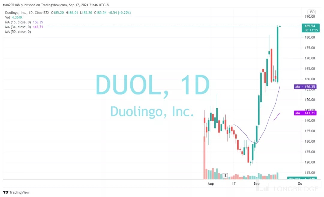 DUOL 股价周图如下