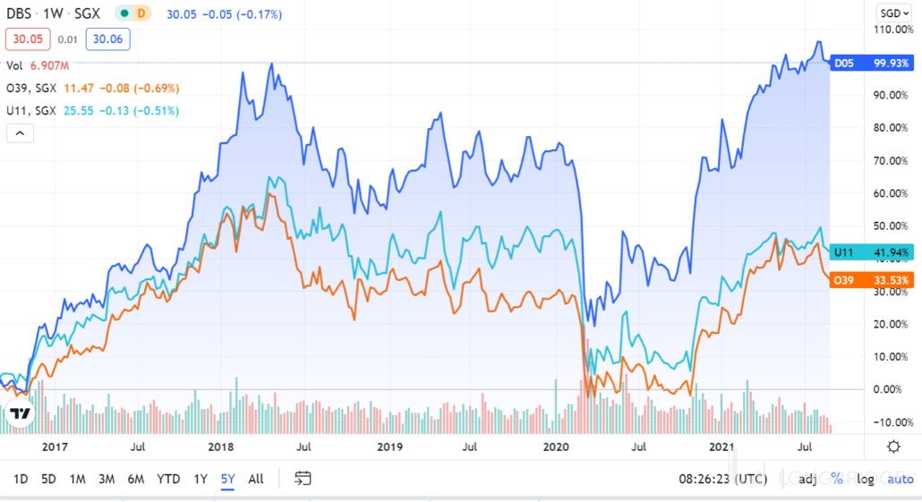尽管新加坡股票长期落后于全球市场,但这三家本地银行在过去 5 年依然能够达到双位数年化回报率。