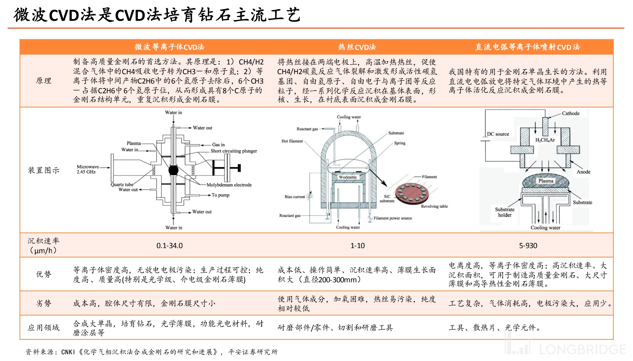 相比 HPHT,CVD 法生产出的钻石纯度更高,但是成本也更高,特种气体消耗大。