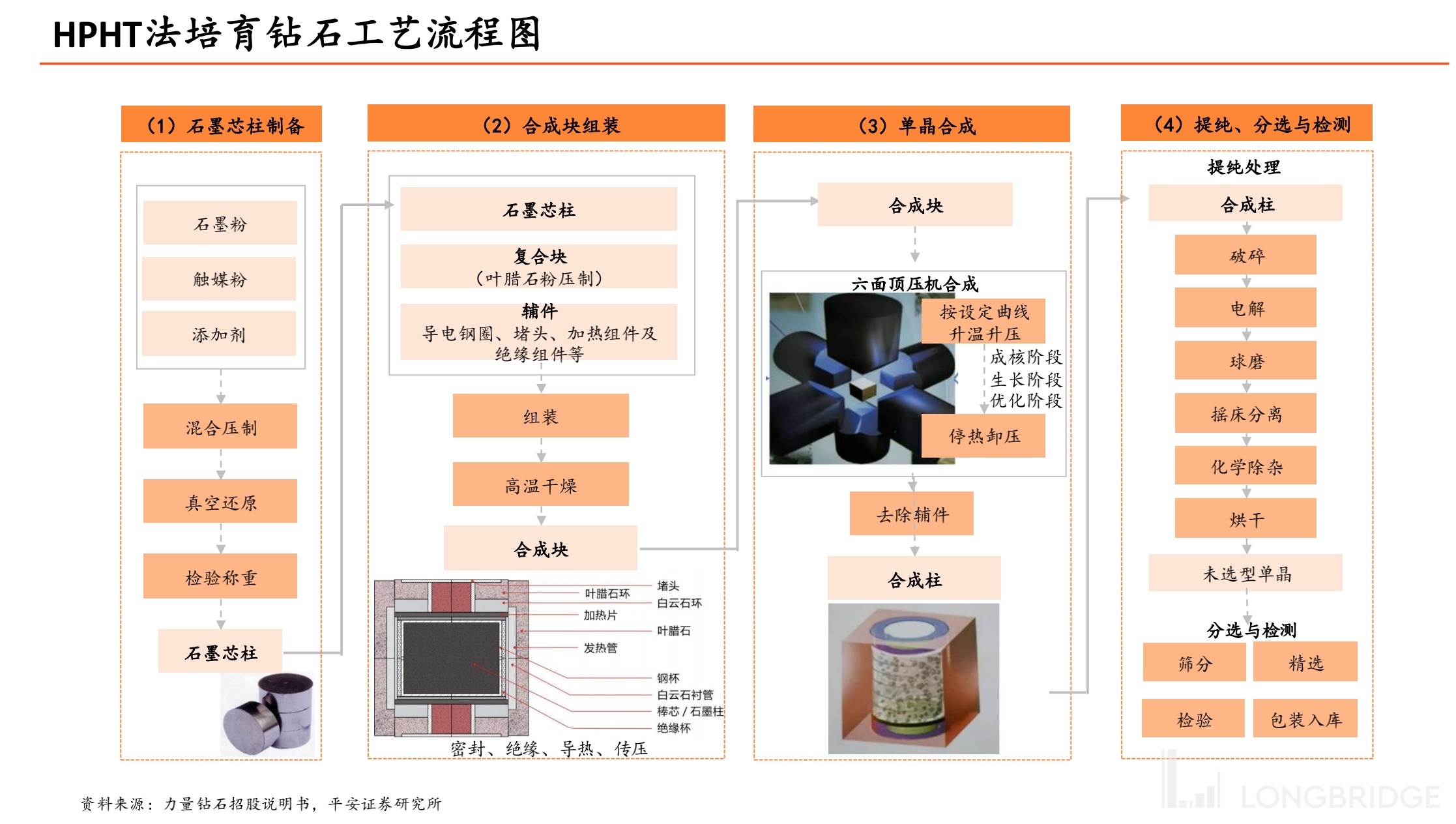 该方法是我国人造钻石主流生产方式,生产设备六面顶压机需求较大。