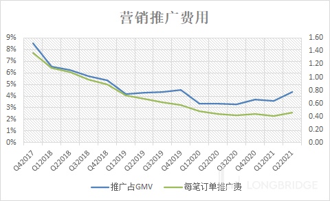 经营杠杆会起显著作用,假设整体费用率占总收入 25%。公司维持低 1P 卖货占比(GMV 的 1.7%),因此折旧摊销维持在 2% 的 GMV 左右。