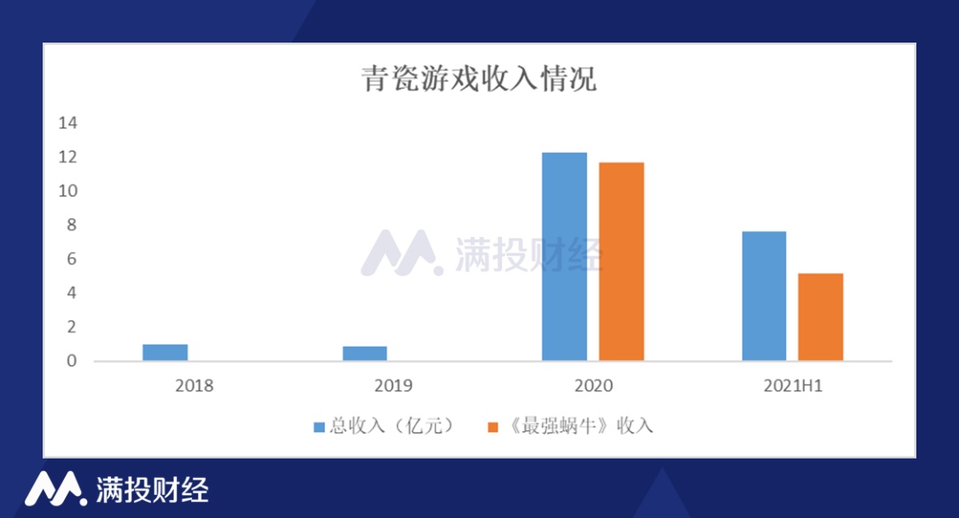 根据招股书数据,2018 年至 2020 年,青瓷游戏产生的收入分别为 0.98 亿元、0.89 亿元和 12.3 亿元,在 2018 年和 2019 年,青瓷游戏的收入仅在千万级别,2020 年直接飙升至 12.3 亿,2021 收入继续增长,仅半年时间,就创造了 7.6 亿元的收入。
