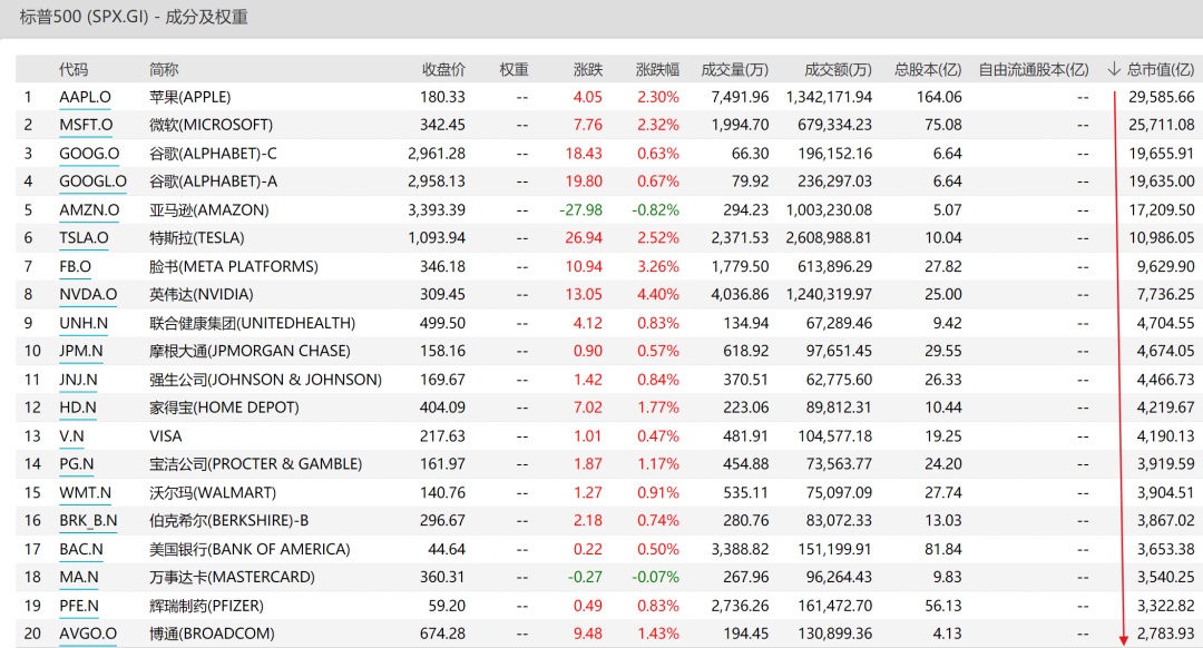 很多朋友很羡慕隔壁标普 500 指数不断新高,但在羡慕之余我们要搞清楚美股指数的权重成分股是哪些?目前标普 500 指数里面拥有太多实力强大的科技类公司,包括苹果、微软、谷歌、亚马逊、特斯拉、facebook、英伟达等,这些公司不止称霸美国本土还把触角伸到全球各地。