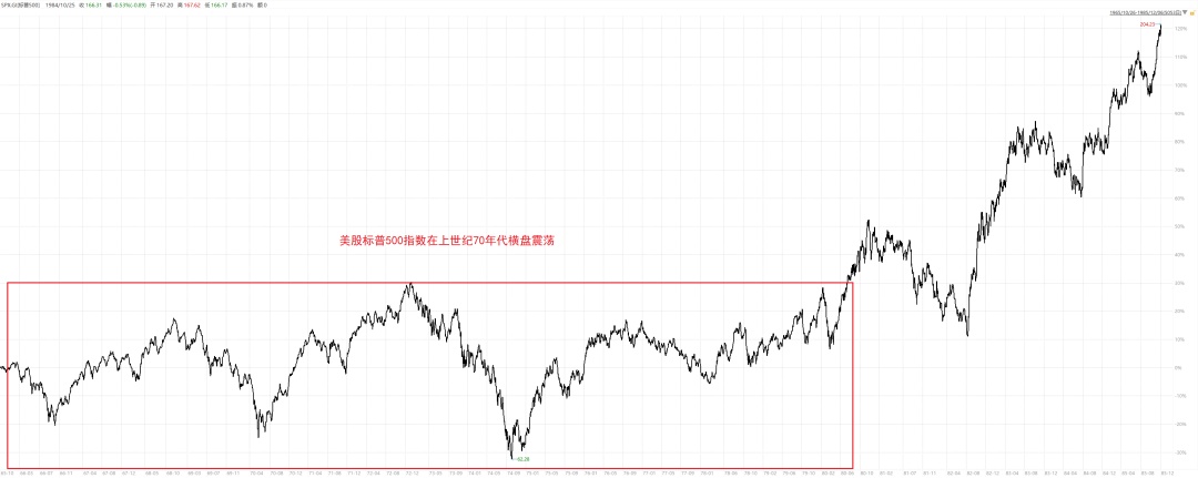 2、但是指数普遍采取的是市值加权法,市值越大的股票权重越大,市值越小股票的权重越小。这就导致在经济转型期间很痛苦,市值大的股票会慢慢变小,拖累指数收益。市值小的股票会慢慢变大,但因为权重小几乎没有业绩贡献。回溯美股历史也有类似的时间,标普 500 指数在上世纪 70 年代横盘不涨,跟当下 A 股的上证指数走势相似。