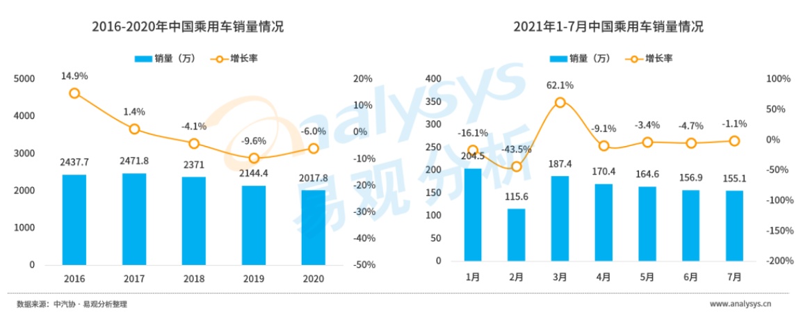 根据易观分析的数据,从 2018 年开始,我国汽车消费市场进入存量阶段,汽车销量连年下跌,存量市场的博弈拉扯甚是激烈。