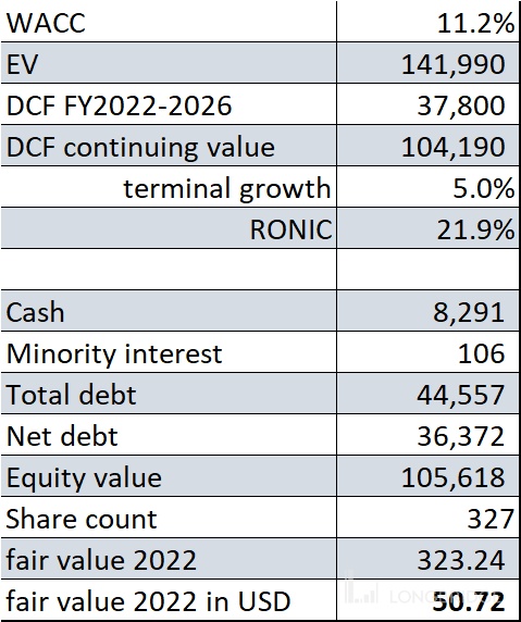 加盟方面,基本收入抽点就是 GOP,需要预测的就是抽点能否提高(不能)以及三大费用能否降低:营销与推广,总务以及研发。其中研发是资本化的,所以没显示在损益表中。其中软件的资本化总额也就 1 亿人民币左右,无需特殊处理。营销推广和总务开支在过去五年都是逐年占收入比提高,没有显示任何经营杠杆。这在预测期也不好做过于乐观的推测。