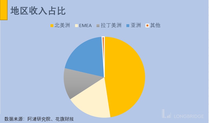 - 相比 2020 年,北美洲,拉丁美洲,亚洲地区的收入均有不同程度的下滑。
