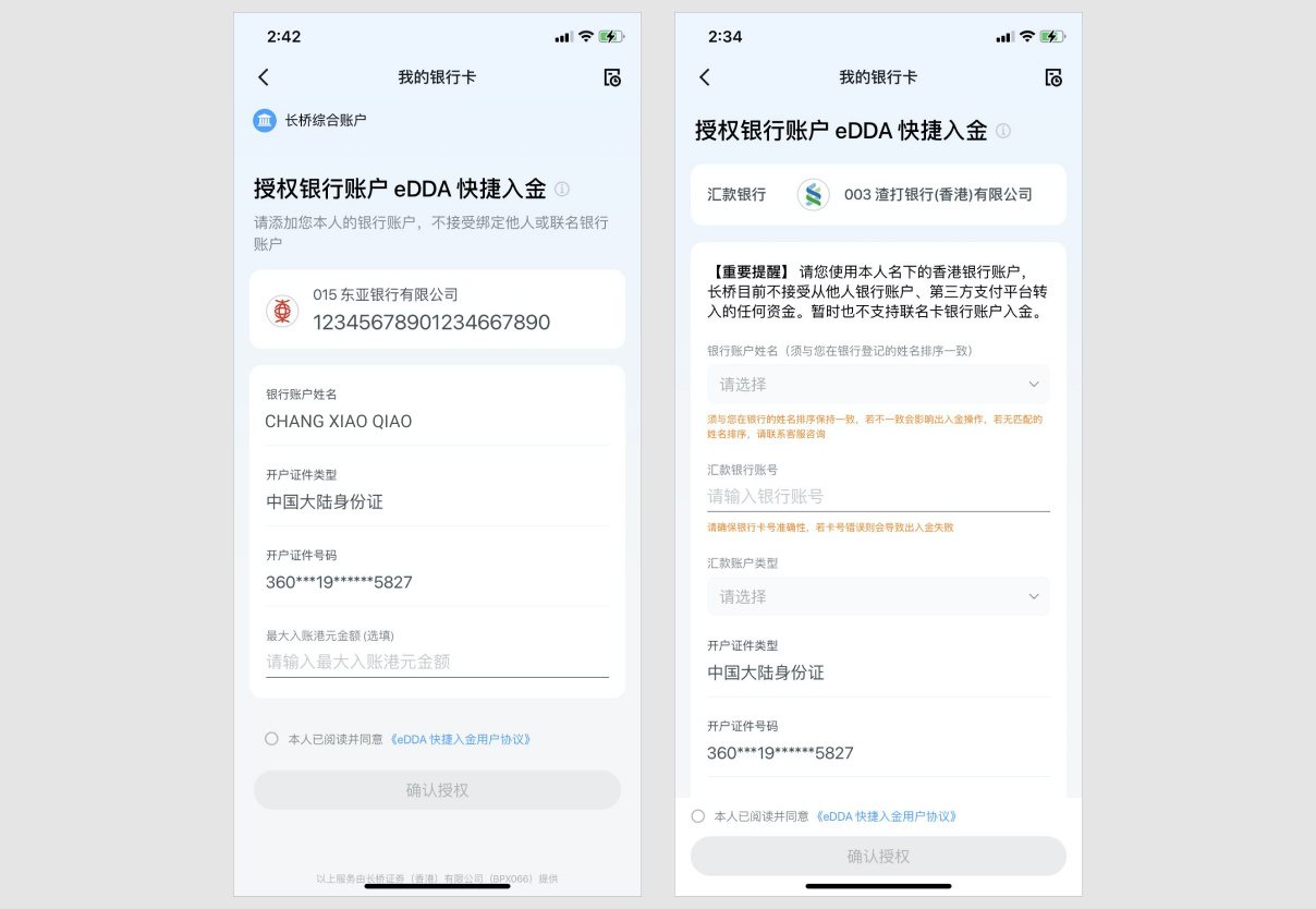 长桥的 eDDA 入金升级啦,更加方便快捷,无需再去银行网银端授权,可直接在长桥 App 上授权并入金,5 分钟极速到账,下面具体介绍下这个强大的功能。