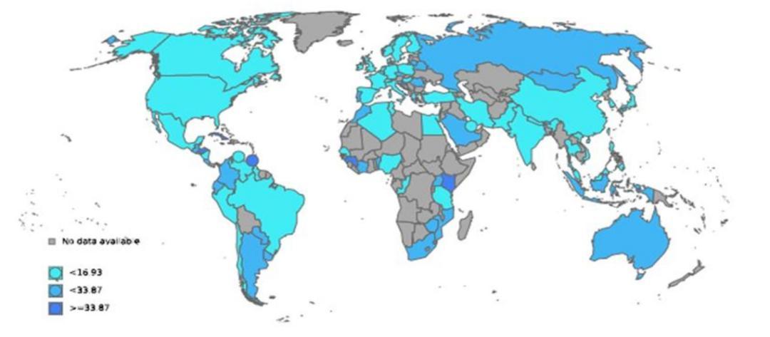 图:全球不同地区女性 HPV 感染率