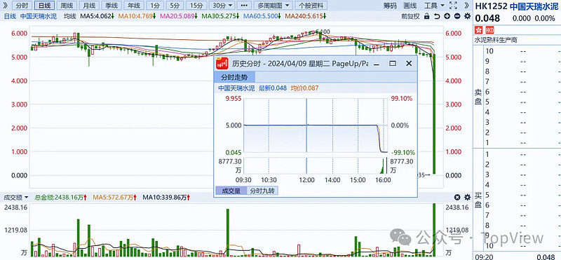 For example, Tianrui Cement, which was widely discussed yesterday, dropped 99%, wiping out a billion-dollar market cap stock with just 24.38 million HKD.