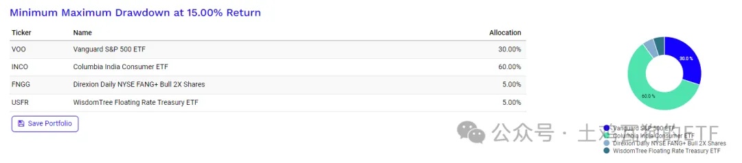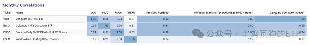 如图所示,优化后标的及仓位:30%VOO+60%INCO+5%FNGG+5%USFR
