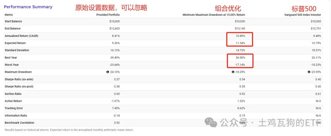 ③近 3 年时间,各项指标均好于标普 500,而且涉及 2022 加息周期,这就比较有意义,证明我们构建的组合是有效的。
