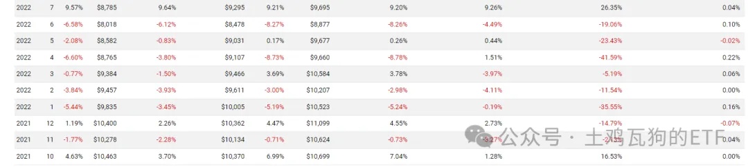 组合里最有弹性的是 FNGG,如果把这 5% 仓位加在 FNGG 上,在 2022 年 12 月,组合月度下跌 7.59%,回撤大了 1%,跑输标普 500。