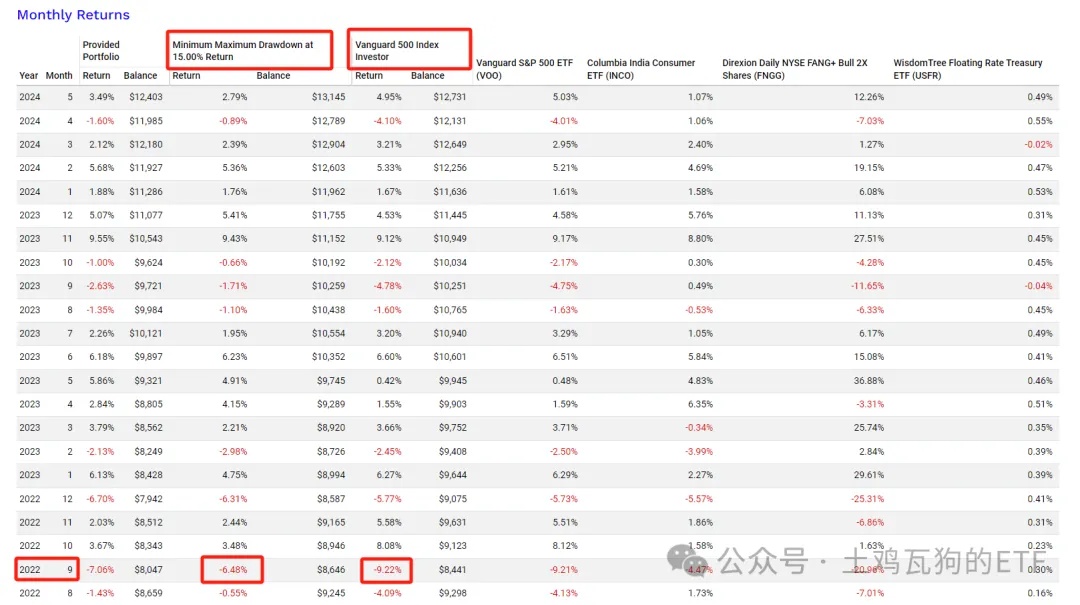 2022 年 9 月,是跌幅最大的月份。标普 500 下跌 9.22%,而组合月度下跌 6.48%,这是发生在美联储大幅加息时候。经过各项对比,我们知道这个方案是可行的。