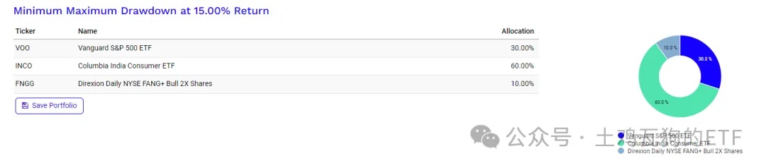 1、选择标的,原则是长牛向上、波动越低越好。美股宽基,标普 500ETF(VOO,费率比 SPY 便宜);印度市场,选择波动最小的印度消费 ETF(INCO)、2 倍多 Fang+(FNGG)