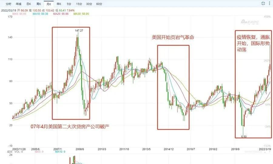 1. First, over the past 20 years, oil prices have been highly volatile due to wars and political factors, but they have generally remained within the range of $40-$100 per barrel. During the same period, the U.S. Consumer Price Index (CPI) increased by approximately 60%.