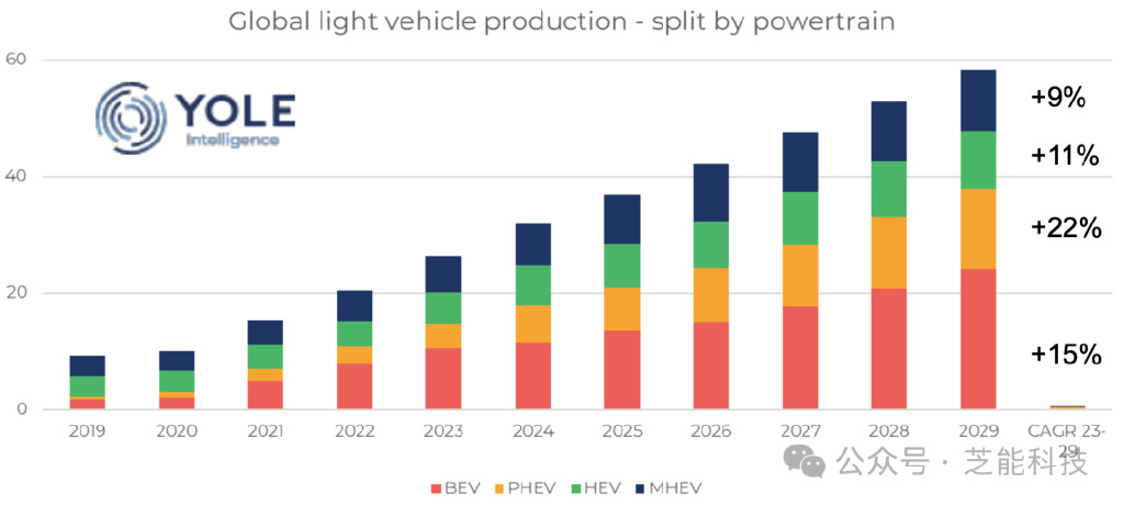Looking ahead, the global hybrid and electric vehicle market (including mild hybrid MHEV, hybrid HEV, plug-in hybrid PHEV, and pure electric BEV) is expected to maintain strong growth, with estimated growth rates of 15%, 22%, 11%, and 9% in each segment, respectively. This growth trajectory undoubtedly reflects the sustained high demand for electric vehicles worldwide.
