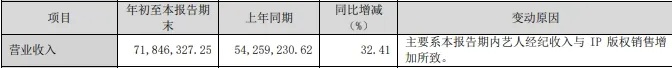 Huace's Q1 2024 revenue grew 32.41% YoY to ¥71.85M without new releases, driven by talent income and IP sales.