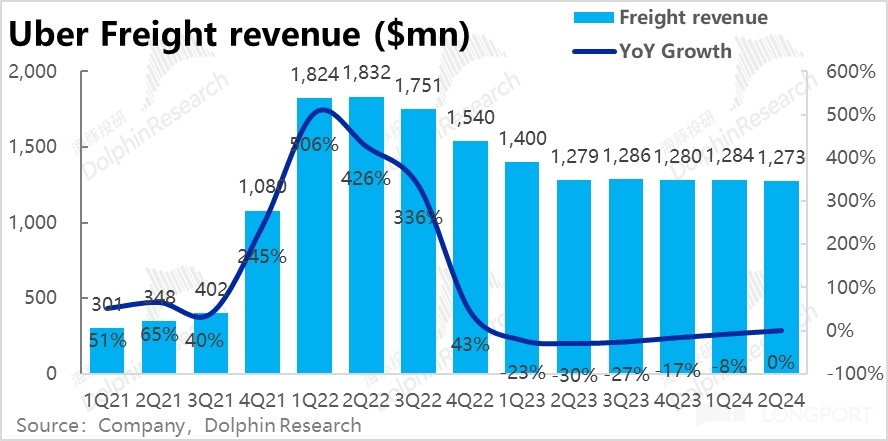 As for Uber's freight business, revenue for this quarter is approximately 1.27 billion, slightly shrinking compared to the previous quarter. Although slightly better than expected, it has little impact on the company's overall performance and valuation.