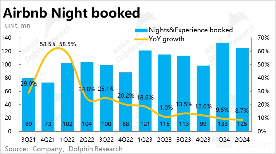 This quarter, Airbnb's total booking amount is approximately $21.2 billion, with a year-on-year growth rate slowing down from last quarter's 12.4% to 11%, but the actual performance is slightly better than the more conservative expectations.