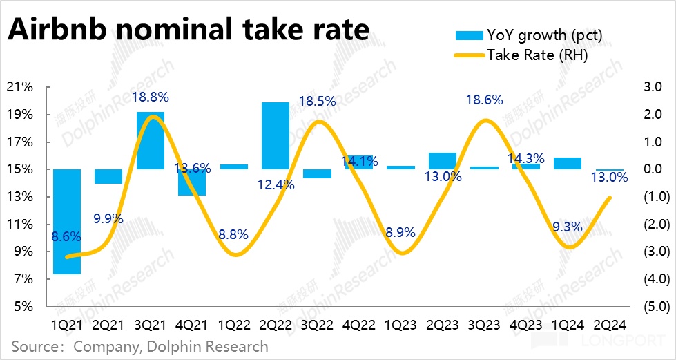 The bigger issue is that originally benefiting from the quadrennial Paris Olympics, the market expected Airbnb's growth in the second half of the year to accelerate significantly. If this turns out to be true, then the slightly weaker performance in the first and second quarters of this year is forgivable (for now). However, the disappointment lies in the fact that according to the guidance, the third quarter not only did not accelerate, but further slowed down, breaking the market's expectation that the slowdown was only temporary, and is more likely to be continuous. This to some extent has become a serious problem of "killing narrative logic".
