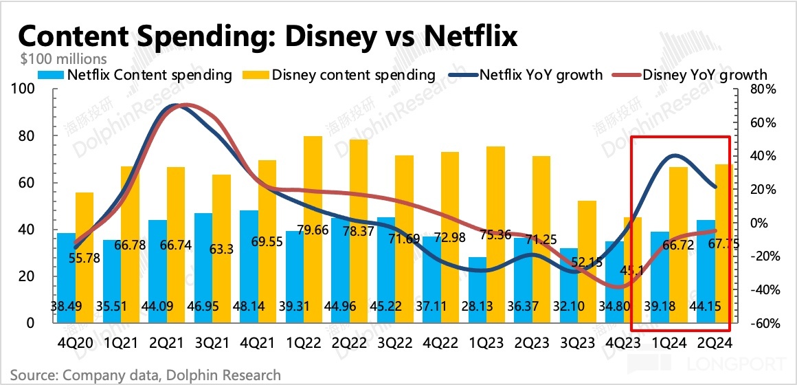 Looking at the recent quarters' content investments, although the investment scale is still declining year-on-year, the rate of decline has gradually slowed down, and a rebound is expected to be seen in the 2025 fiscal year. This trend in the investment cycle can also be observed in Netflix