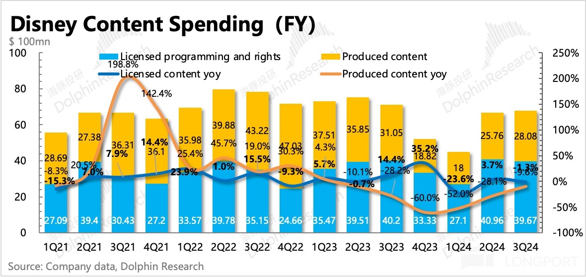 However, Dolphin predicts that there will be an increase in operating-related investment expenditures in the 2025 fiscal year, especially in content investment. Over the past two years, due to proactive streamlining and the impact of the Hollywood strike, Disney's lack of reserve content has gradually become apparent - with several new movie release dates being postponed repeatedly.