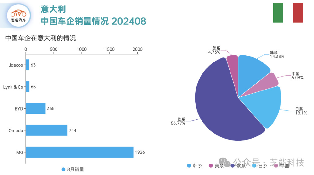 ● 中国车企目前在意大利市场占据 6% 的市场份额,