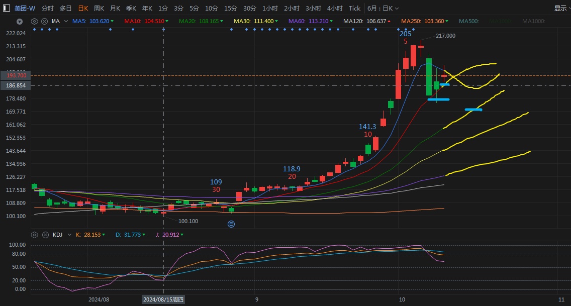 Meituan faces resistance near HKD 193 in the next two days, with support at 190 and 176, and major support at HKD 171. $MEITUAN(03690.HK)