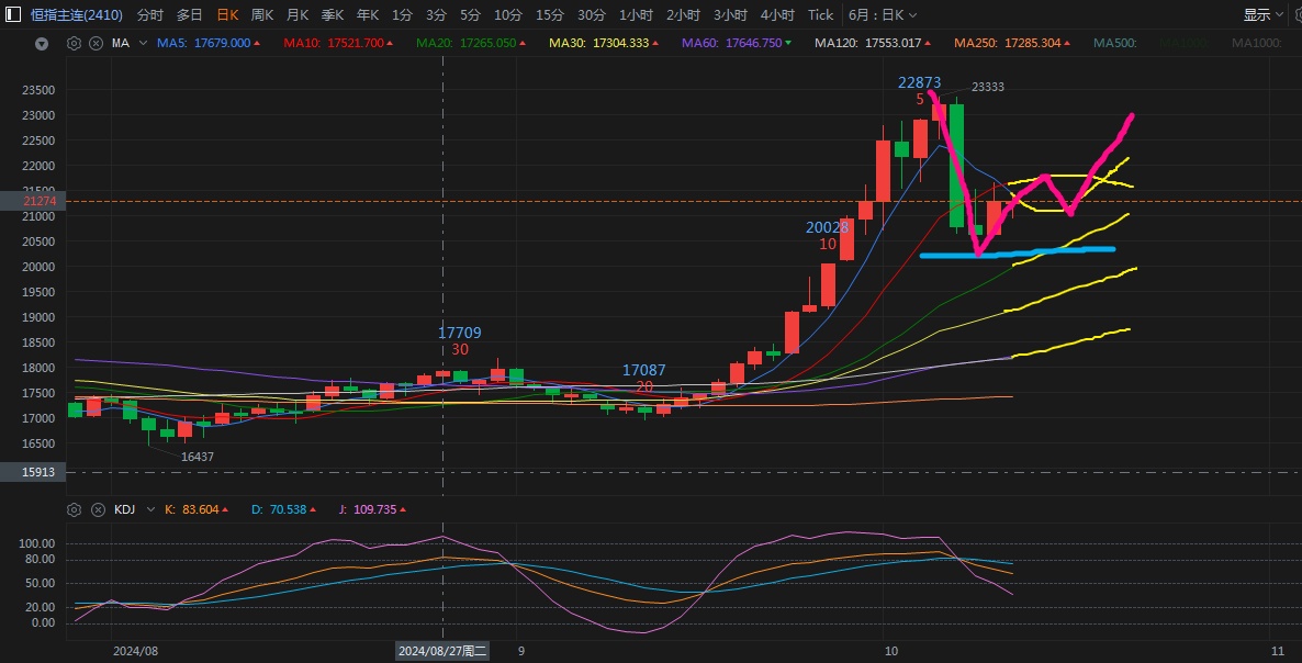 As mentioned last week, the familiar taste of Hong Kong and A-shares is back again. Brokers are working overtime to recruit new accounts, and newcomers are rushing into the market in droves. The internet is flooded with hype about a bull market, as if they're afraid the naive investors won't come to take the bait. It's said that newcomers can only start buying on October 9th, which I think is quite merciful. After all, on the first trading day after the holiday, the Shanghai Composite Index opened high at 3674 but quickly plunged, closing with a long lower shadow and a green hammer candlestick (reportedly due to the disappointing content of the 10 AM press conference that day). This probably scared off quite a few new naive investors. If that didn't scare them away, the next day's 6%+ plunge would've buried them alive. Hong Kong's market was even more brutal—after the holiday, the northbound capital returned on October 8th and triggered a massive crash. The Hang Seng Index futures plummeted 10% in a single day, while the Hang Seng Tech Index dropped over 14%. Some who leveraged up to chase highs during the National Day holiday lost all their pre-holiday gains, and some even got margin-called. Losing money in a bull market—turns out it's not a myth...