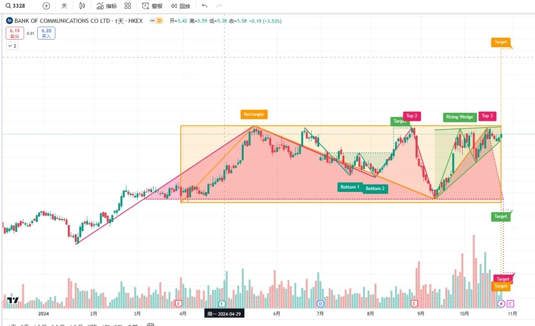 突破了矩形看涨,正在形成的双顶,以及处在 RW 中