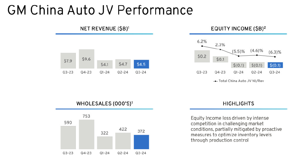 通用汽车在中国的股权亏损为 1.37 亿美元,而去年同期为盈利 1.92 亿美元。随着针对中国市场的重组和调整逐步推进,第三季度的销量相比第二季度有所回升。