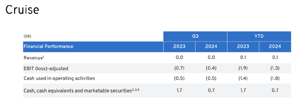 随着 Cruise 的缩减规模,整体的亏损收敛了。
