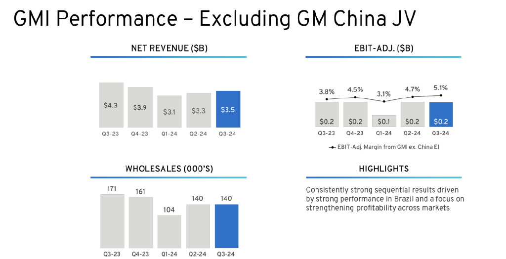 整体 GMI 除了中国和除了美国的表现,卖了 14 万台车,收入是 35 亿美元,有 2 亿美元的经营亏损。