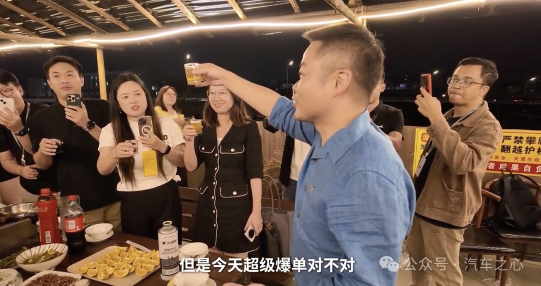 何小鹏和品牌营销团队会后庆祝 P7+ 爆单