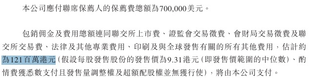 然后这个票招股书上按发售价范围的中位数 9.31 港元计算,公开的上市所有开支总额约为 1.21 亿港元,募资额约 14.77 亿港元,占比约 8.19%,开支相比募资额算是比较少了。