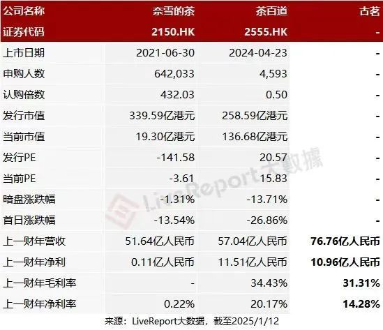 奈雪的茶当年 IPO 市值发行 340 亿,跌到现在只剩 20 亿了,到现在企业还是亏钱的,纯粹是泡沫。茶百道 IPO 时候发 258 亿估值的,20 倍 pe,现在跌的只剩 140 亿了,参考同行业已上市或拟上市企业,古茗发行估值发 200 多亿 18 倍 pe 其实明显是过高的。