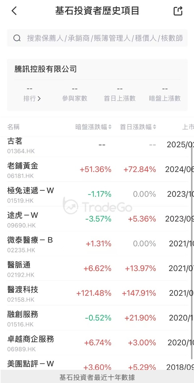这票唯一的亮点就是基石是腾讯,由腾讯控股全资拥有的 Huang River Investment Limited,认购 2500 万美元(约 1.95 亿港元),从历史的角度看,腾讯投基石的新股首日都有涨,这也是这个票的唯一亮点了,当然这个票是继续创造历史,还是说打破历史,那现在也不得而知。