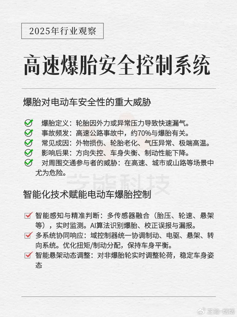 爆胎控制系统的智能化不仅是一项安全技术,关乎单一车辆的行驶安全,更关乎整个交通系统的稳定与高效。只有当车辆在面临最极端挑战时依然能够保持可控。