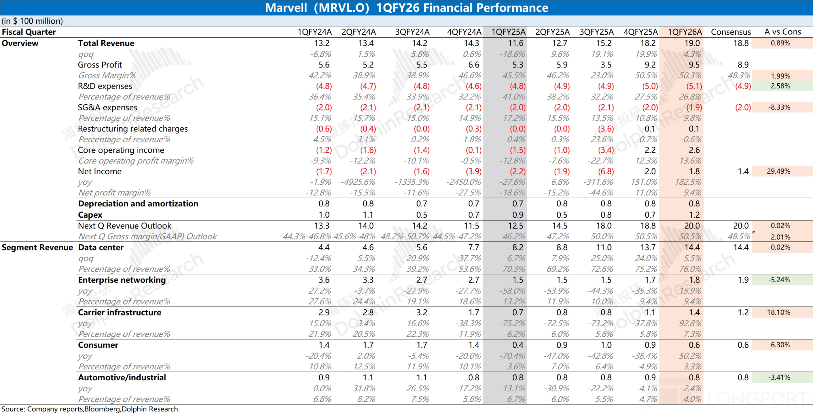 Marvell Technology (MRVL.O) released its Q1 2026 fiscal year earnings (ending April 2025) after U.S. market close on May 30, Beijing time:
