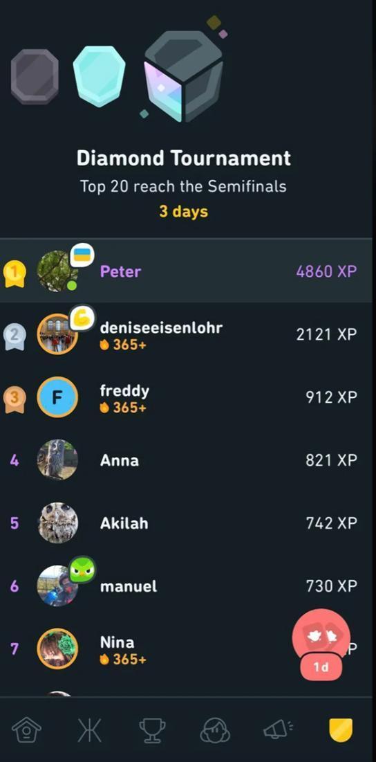 In addition to lowering the learning threshold through gamified design, Duolingo's social function is also an important means of maintaining user stickiness. Users can see their learning achievements ranked among friends in the app. This kind of subtle competition naturally stimulates users to stay active and use deeply, while the "circle of friends ranking" winner gains great emotional satisfaction.