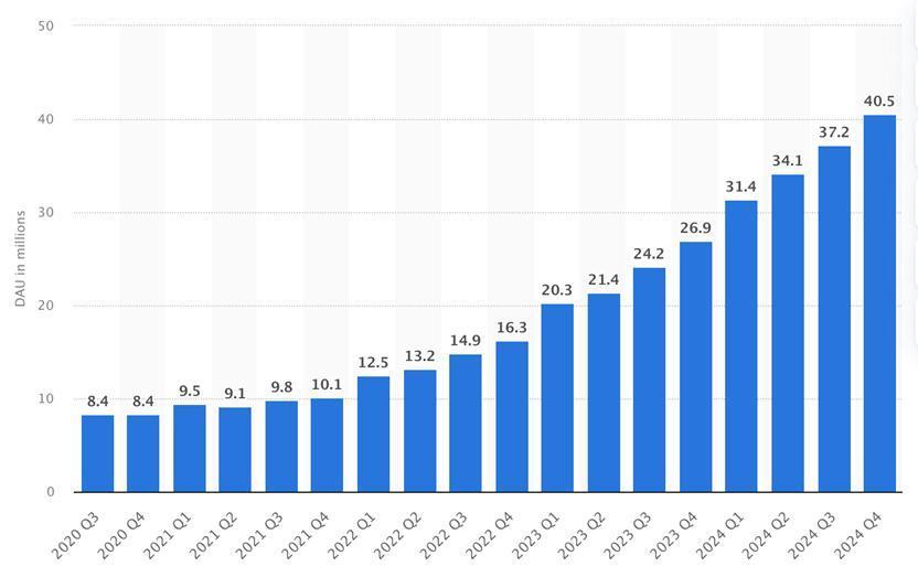 • Daily active users (DAU) of 46.6 million, up 49% year-on-year;