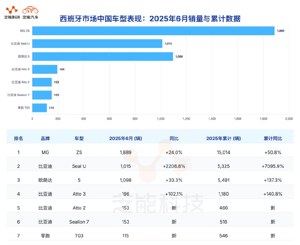 In the Spanish market, Chinese brands are no longer marginal players but demonstrated a full-fledged momentum to penetrate the mainstream in June 2025.