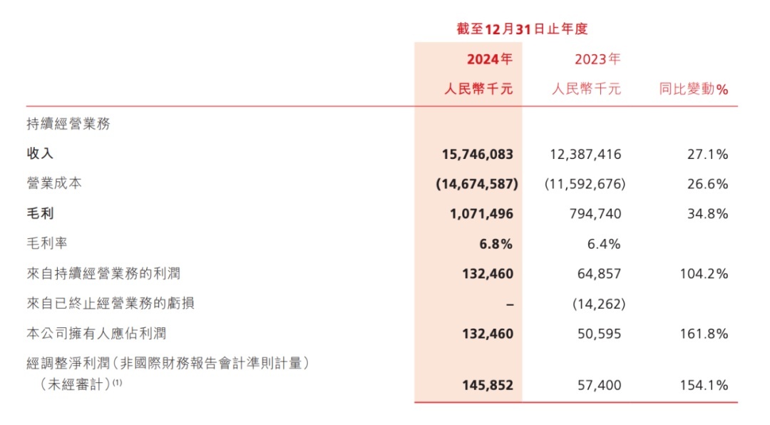 Figure: SF City Express's 2024 revenue, gross profit, and net profit data.$SF INTRA-CITY(09699.HK) $MEITUAN(03690.HK) $BABA-W(09988.HK)